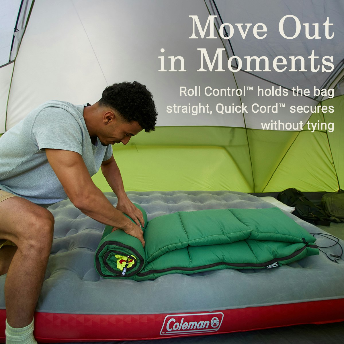 - Quick Cordâ„¢ secures the rolled-up bag without tying