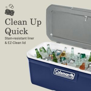 Icy beverages and shared meals fuel the best times outdoors, and the Classic Series Cooler is the right choice for the job. This large 150-quart chest holds up to 124 cans and 82 lbs. of ice, enough to refresh the entire gang. Looking for multiday ice retention? TempLock FX™ insulation in the lid and body has you covered. And, the Classic Series is made with 15% less plastic than comparable Coleman® coolers. Built to last, the Have-A-Seat Lid™ supports up to 250 lbs., has four cup holders, and is recessed for easy access. Want more? The tethered drainplug resists leaks, the liner resists stains, and our EZ-Clean top makes cleanup simple. Sporty tri-color combo has classic appeal, and there’s even a built-in ruler for measuring the catch of the day. From campsite to worksite, beach to bonfire, soccer field to stadium–Coleman helps you keep your cool.