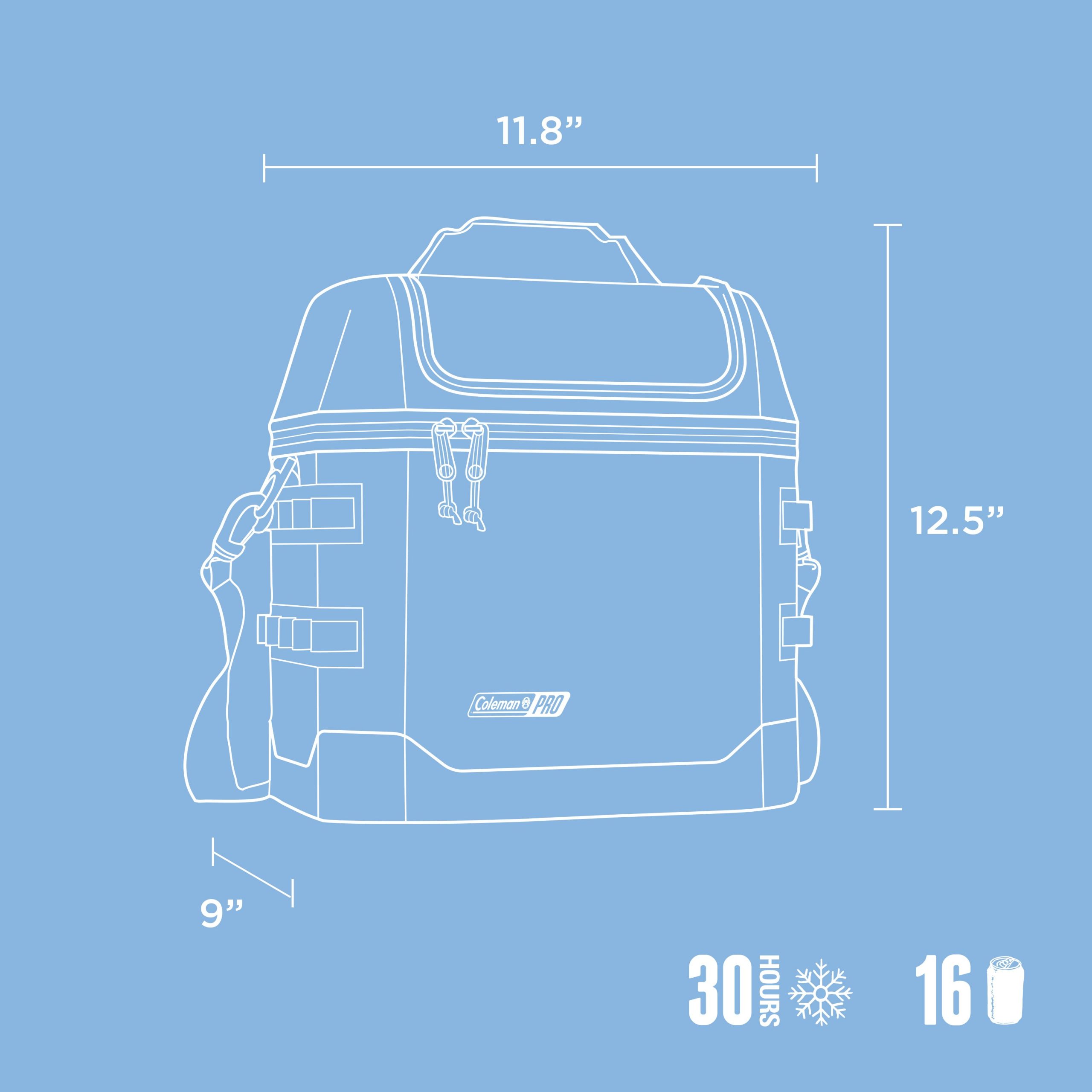 You work hard for your time off. You deserve gear that goes above and beyond. Meet the Coleman Pro series, designed for those who expect more. Combining on-the-go durability with go-anywhere flexibility, this 16-can soft cooler stays cold for up to 30 hours thanks to a fully insulated lid and body. Use its padded carrying strap to comfortably trek from backyard to beach to tailgate to sidelines, while the oversized zipper reduces snags and boosts long-term resilience. The antimicrobial liner helps prevent odor, mildew, and mold.* Best of all, these built-to-last features are backed by our 3-year limited warranty, so you can confidently bank on Pro performance for all your trips to come.