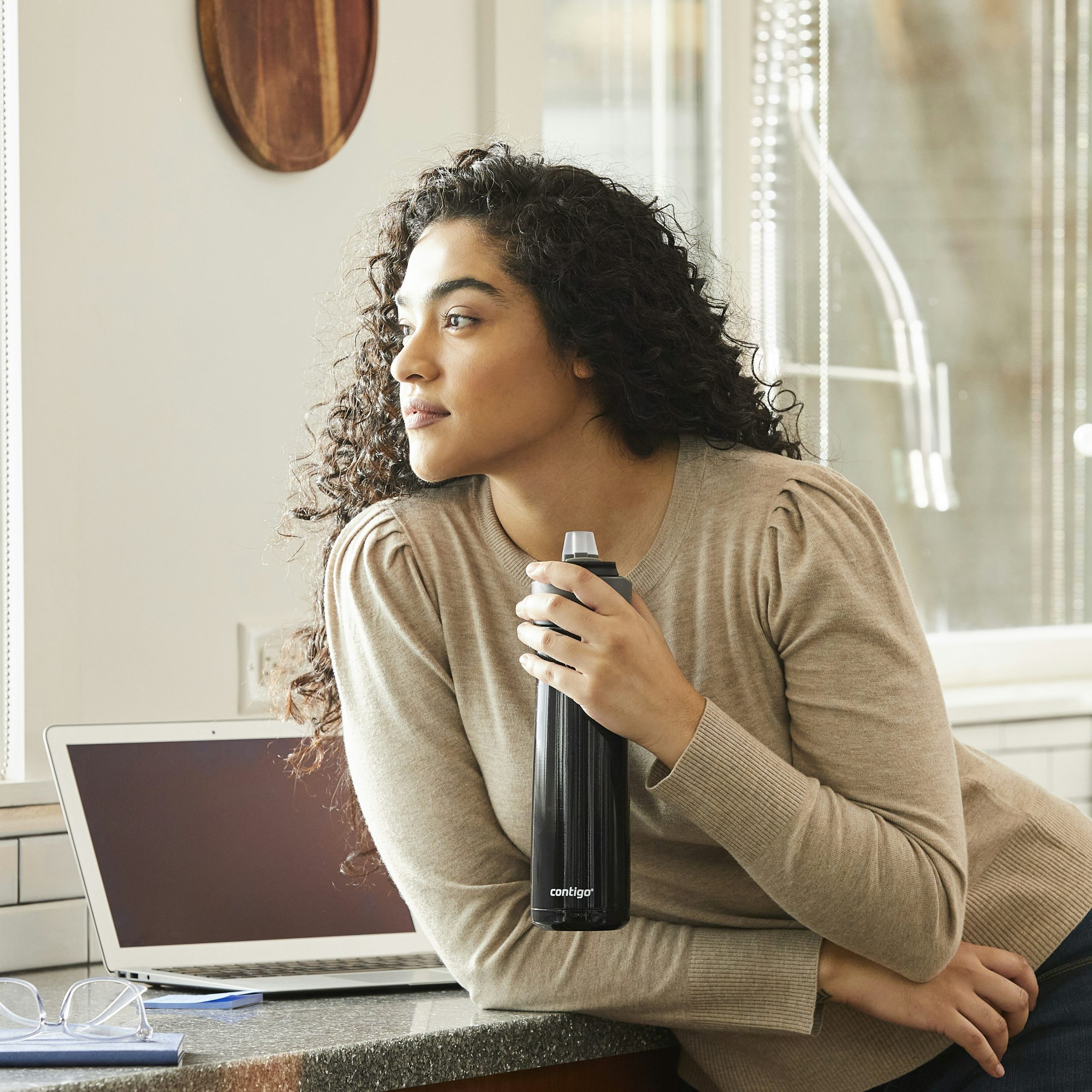 - Push-button AUTOSPOUT® technology offers on-the-go leakproof drinking
