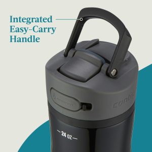 Push, sip, and press your way to better hydration. The AUTOSPOUT® Stainless Steel Water Bottle features push-button technology for easy one-handed drinking. Whether you’re working out or working at your desk, the double-wall vacuum-insulated stainless steel body keeps drinks cold for 24 hours and hot for 6 hours. The leakproof lid means less mess wherever you go, and the spout cover helps to protect the spout from dirt and grime so you can drink confidently. Carrying it around is easy with the integrated handle that swings up and sets back down to stay out of the way. Sip every last drop with the angled pop-up straw that fits securely into the lid. The lid is top-rack dishwasher-safe for easy cleanups and the body is hand-washable. Fits most car cup holders.