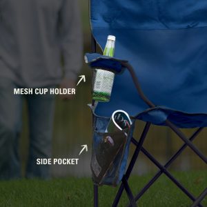 Always have a cold drink within easy reach at the campsite, tailgate, or kids’ ball game thanks to the cooler built into the armrest of the Camping Chair with Built-In 4-Can Cooler. The fully cushioned seat and back mean you’ll enjoy hours of relaxing comfort.