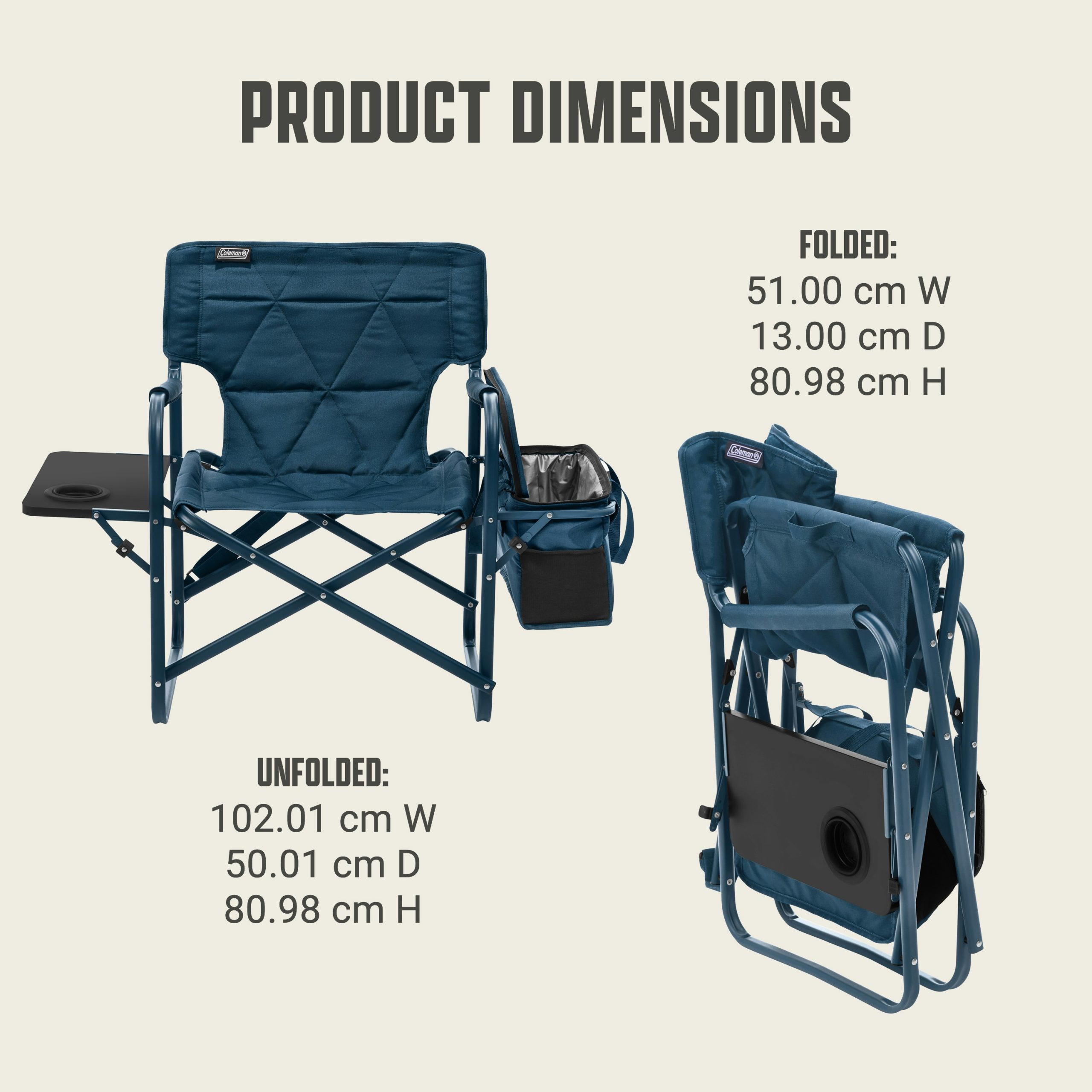 - POP-OUT TABLE & COOLER: A handy built-in side table and 28-can detachable Coleman® soft-sided cooler with a hard-top lid​