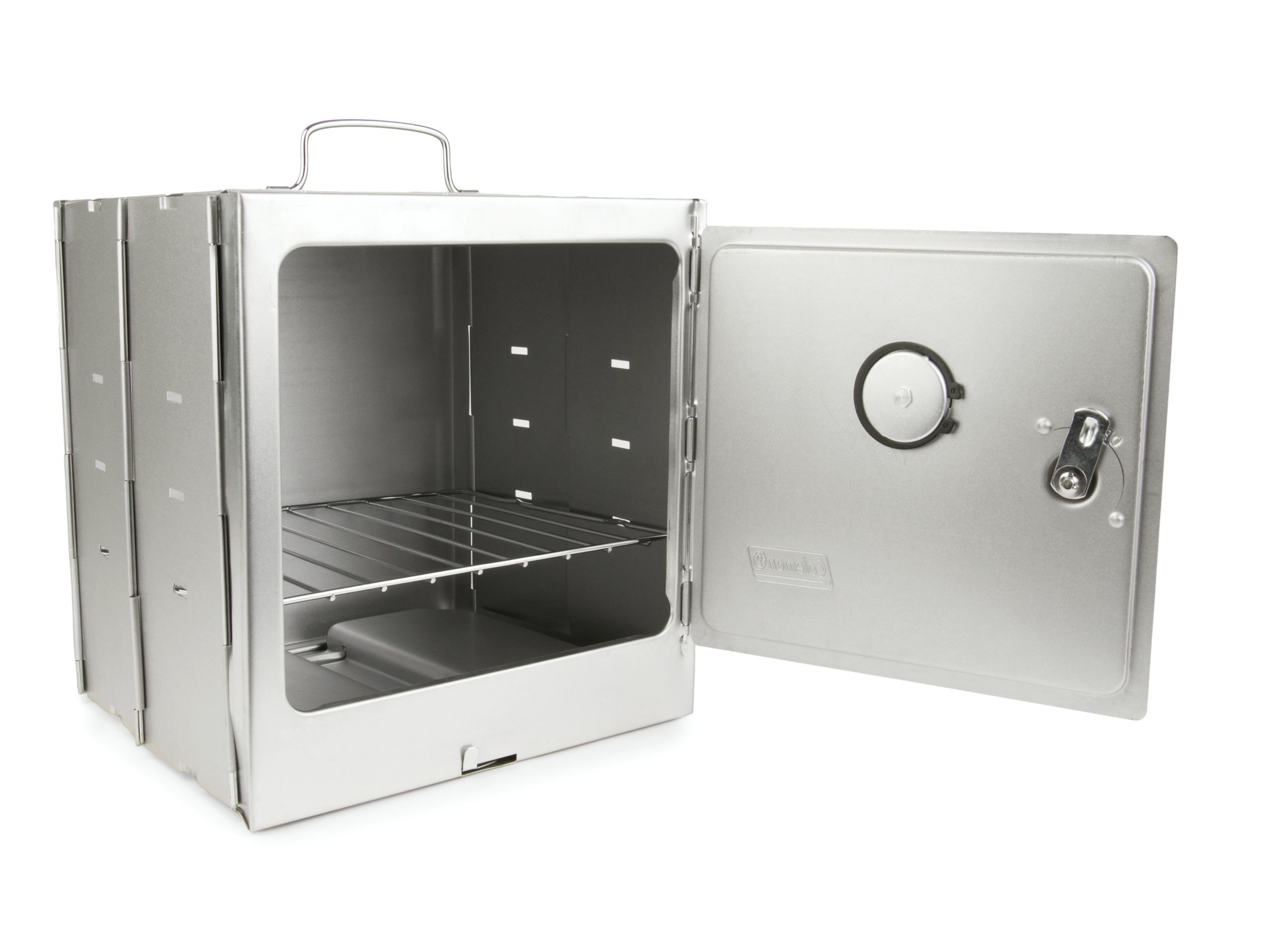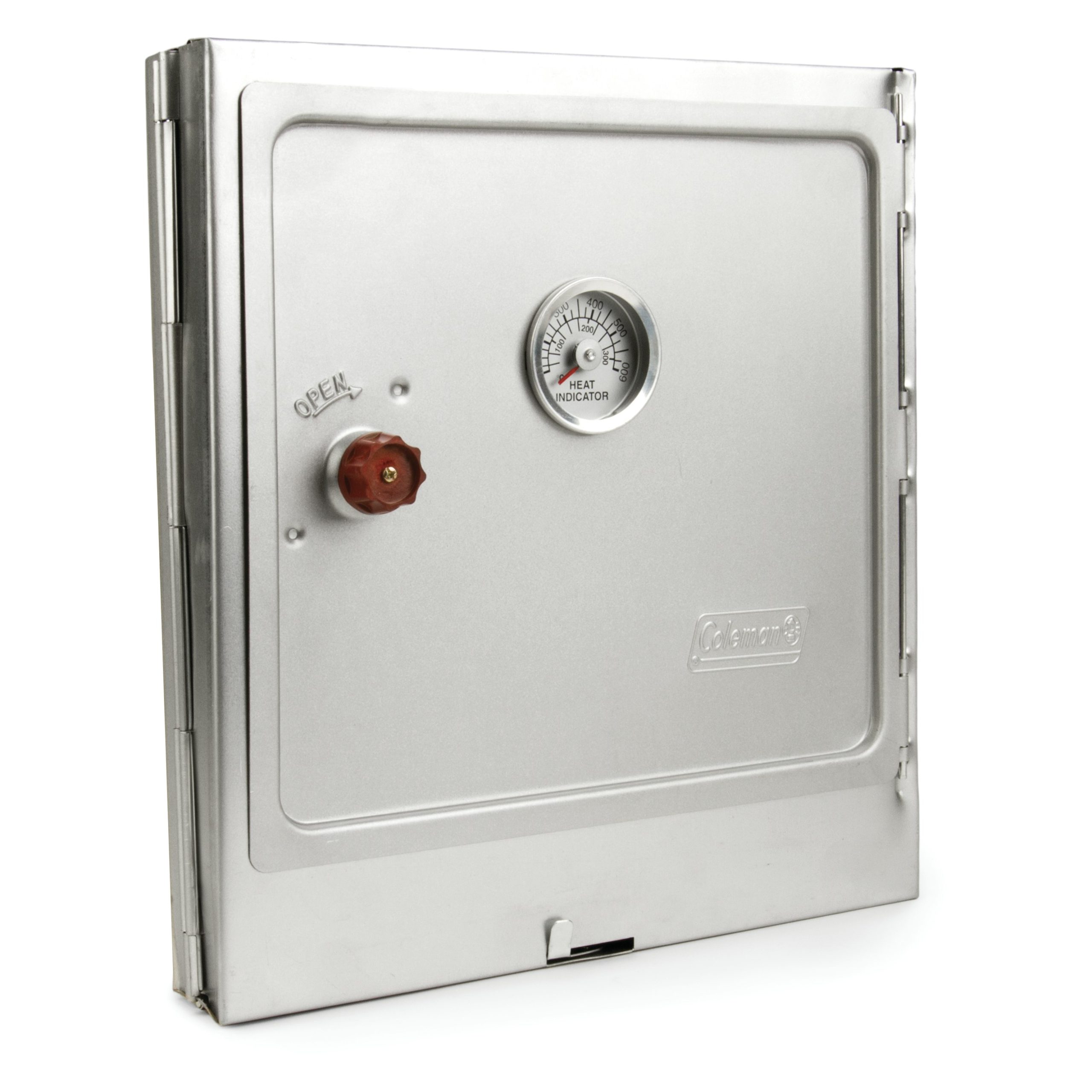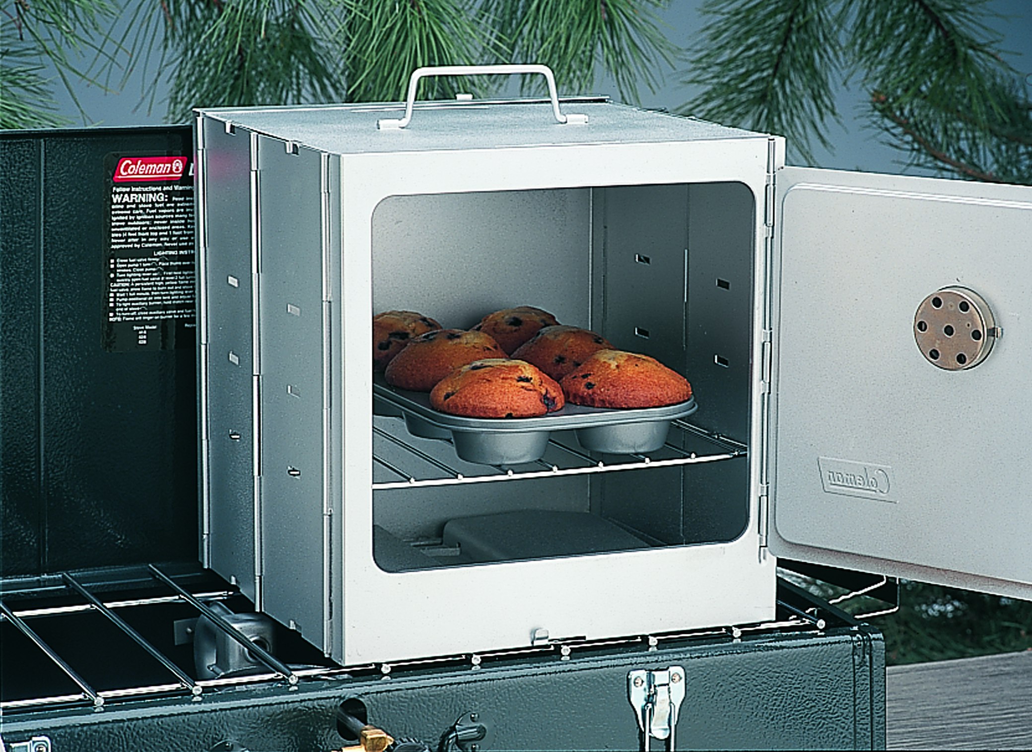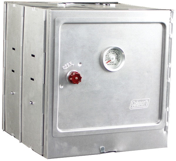 Waking to the smell of fresh-baked pastries at the campsite is possible—with the Portable Camping Oven. This outdoor oven is designed to nest neatly on top of Coleman propane and liquid fuel camp stoves so you can bring the joys of fresh-baked treats to the campsite or tailgate. An easy-to-read thermometer lets you bake in your camp oven with confidence, or you can use it to keep meals warm. A smooth aluminized steel exterior resists scratches and corrosion and easily wipes clean. When it’s time to break camp, the space-saving design folds flat for convenient transport and storage.