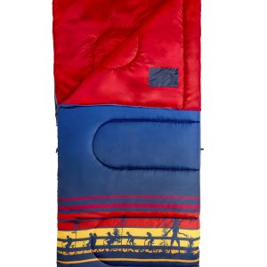 Campers up to 5 feet 11 inches sleep comfortably under the stars in the Stranger Things™ 50°F Sleeping Bag. ThermoTech® insulation and a Thermolock™ draft tube along the zipper prevent body heat from escaping. Packing up is easy with roll-control fasteners that hold the bag straight as you roll—for those times you need to make a quick escape from Demodogs.
