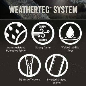- Snag-free, continuous pole sleeves for easy setup in minutes