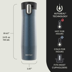 There’s a commuter, traveler, and urban explorer in everyone. The Contigo AUTOSEAL® West Loop Vacuum-Insulated Stainless Steel Travel Mug with Easy-Clean Lid, 12 oz, is made with every journey in mind. The ultimate in on-the-go convenience, this thermal coffee mug is leak- and spill-proof thanks to AUTOSEAL® technology. Press a button to drink, then release to seal after every sip. THERMALOCK vacuum insulation keeps liquids piping hot up to 16 hours or icy cold up to 32. The Easy-Clean Lid pops open completely when you’re done drinking, letting you get into all the nooks and crannies for thorough cleaning. The innovative lid is also one piece, so there are no parts to misplace when you toss it on the top rack of your dishwasher. Stainless steel bodies are hand-wash only.