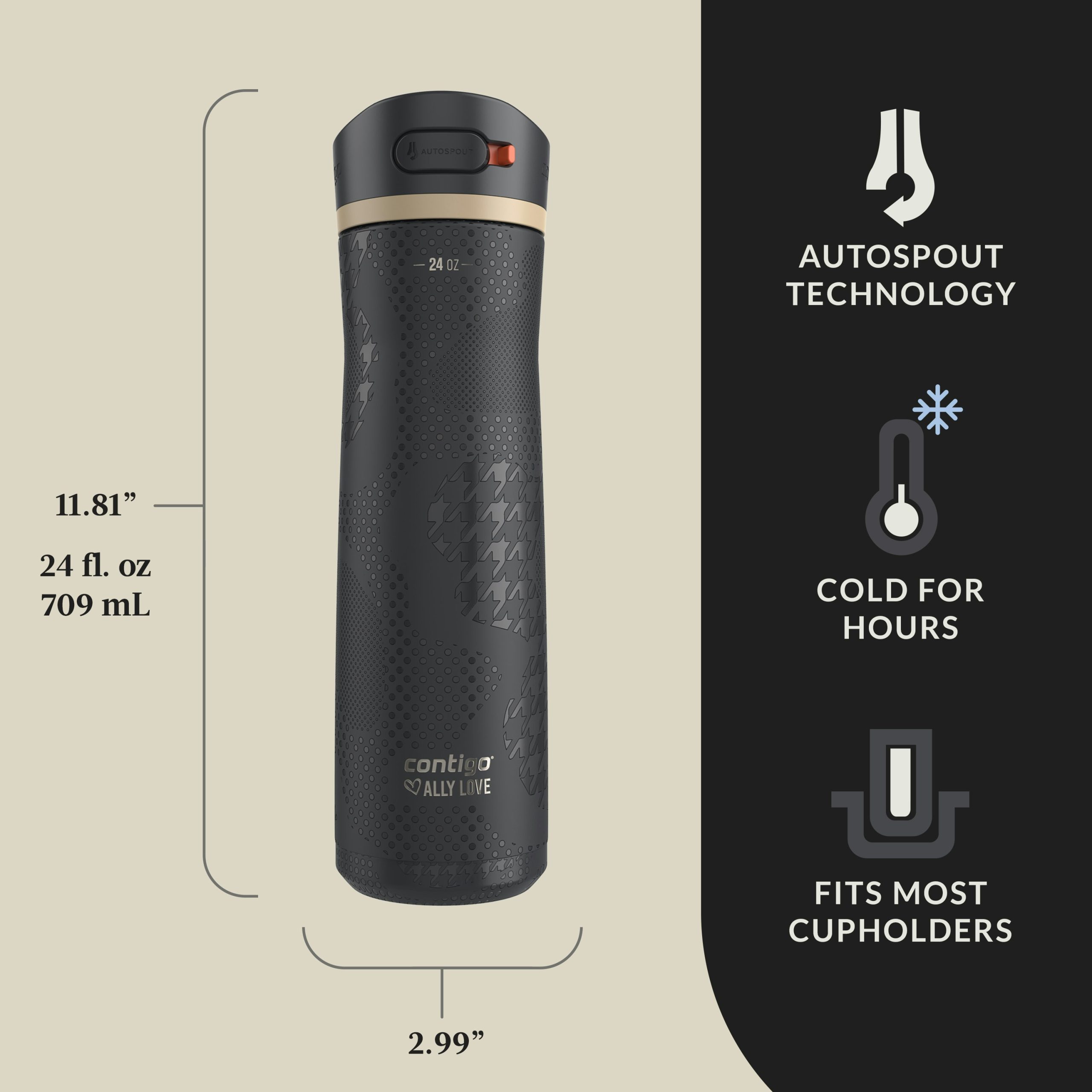 Hey! Ally Love here. As Contigo’s Chief Hydration Officer, I’m thrilled to help you push, sip, and press your way to better hydration with the Ashland Chill 2.0. This AUTOSPOUT® Stainless Steel Water Bottle features push-button technology for one-handed drinking whether you’re on the treadmill or on your phone. Its double-wall vacuum-insulated stainless steel body keeps drinks cold for up to 24 hours so you stay cool no matter what the day throws your way. The leak-proof lid means less mess in your work bag, gym bag, tote, or car cup holder, and the spout cover protects from dirt and grime. Carrying is easy with the integrated handle that swings up and safely sets back down, while the angled pop-up straw fits securely into the lid in between sips. Cleanup is a cinch thanks to a top-rack dishwasher-safe lid and hand-washable body. Hope you love it as much as I do!