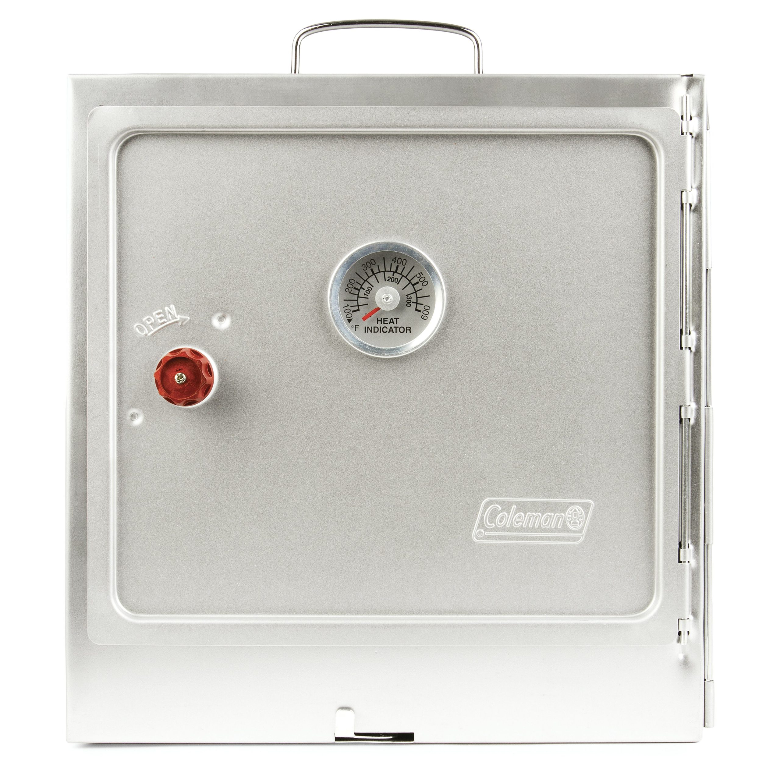 Waking to the smell of fresh-baked pastries at the campsite is possible—with the Portable Camping Oven. This outdoor oven is designed to nest neatly on top of Coleman propane and liquid fuel camp stoves so you can bring the joys of fresh-baked treats to the campsite or tailgate. An easy-to-read thermometer lets you bake in your camp oven with confidence, or you can use it to keep meals warm. A smooth aluminized steel exterior resists scratches and corrosion and easily wipes clean. When it’s time to break camp, the space-saving design folds flat for convenient transport and storage.