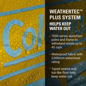 - MORE HEADROOM & WIDE DOOR: Nearly vertical walls provide 20% more headroom than traditional Coleman® tents; wide door makes it easier to move airbeds, sleeping bags, and other gear in and out of the tent