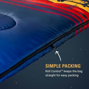 Campers up to 5 feet 11 inches sleep comfortably under the stars in the Stranger Things™ 50°F Sleeping Bag. ThermoTech® insulation and a Thermolock™ draft tube along the zipper prevent body heat from escaping. Packing up is easy with roll-control fasteners that hold the bag straight as you roll—for those times you need to make a quick escape from Demodogs.